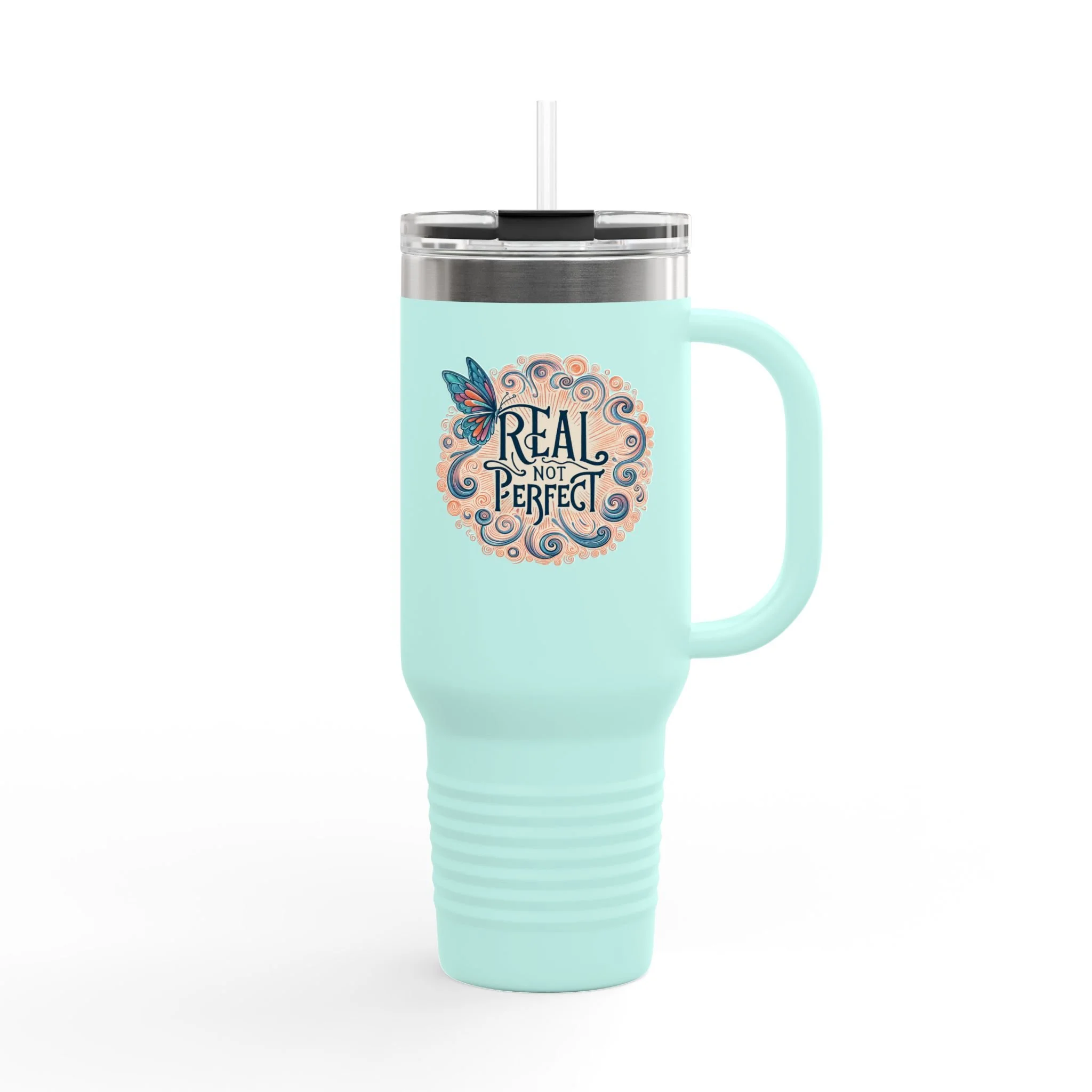 This insulated travel mug is designed for adventure, featuring a durable 100% stainless steel body and a straw with a lid for enhanced convenience on the go. With a generous 40oz (1.183l) capacity, it keeps your beverages at the perfect temperature thanks to its double-wall insulation. The powder-coated finish adds a sleek touch and is available in eight vibrant color variants so you can find that perfect match.