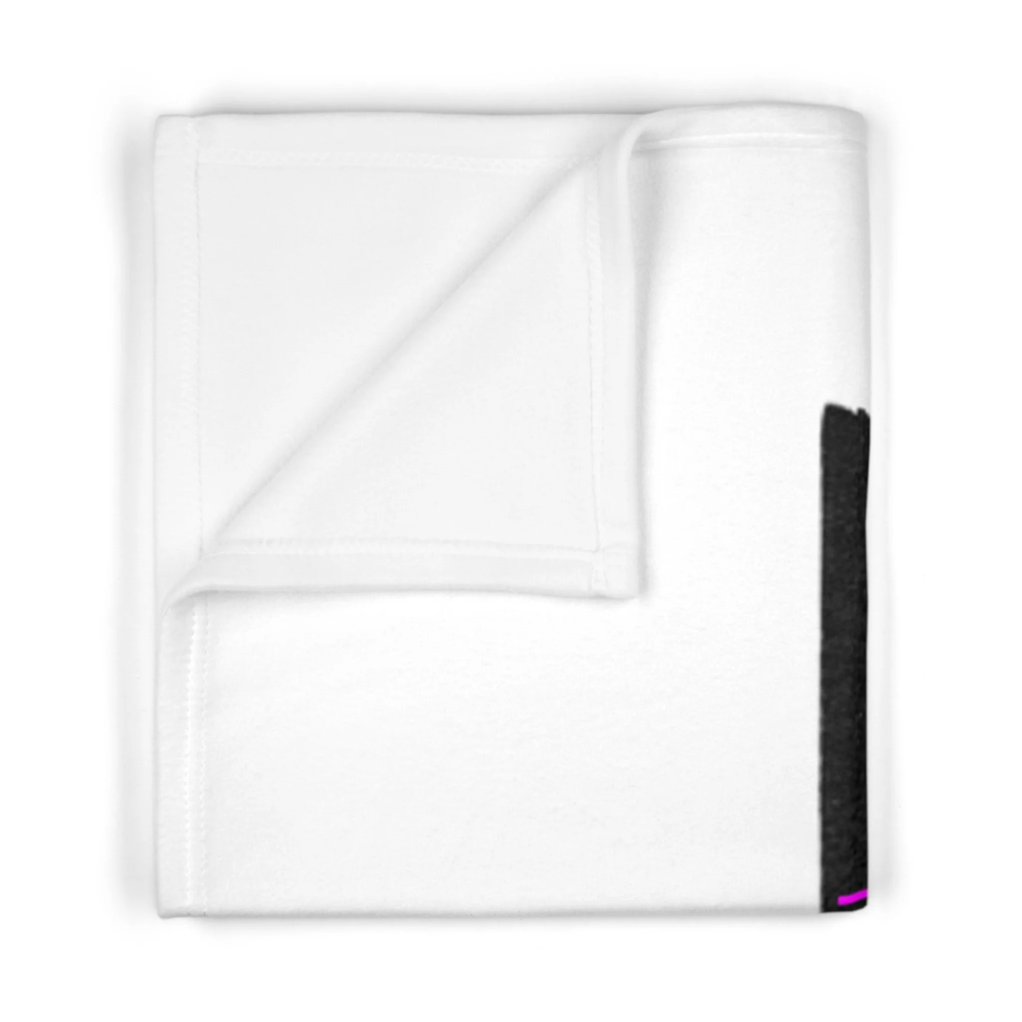 Fleece is king when it comes to fluffy softness. As such, the personalized fleece baby blanket is a cuddle necessity. 30” by 40”, this 100% polyester rectangle supports printing on one side. These items are preconstructed before printing, so exact symmetry is not guaranteed. Due to the microfiber construction, small colored dots may pop up. A cold wash cycle and a tumble dry, however, should reduce this possibility.