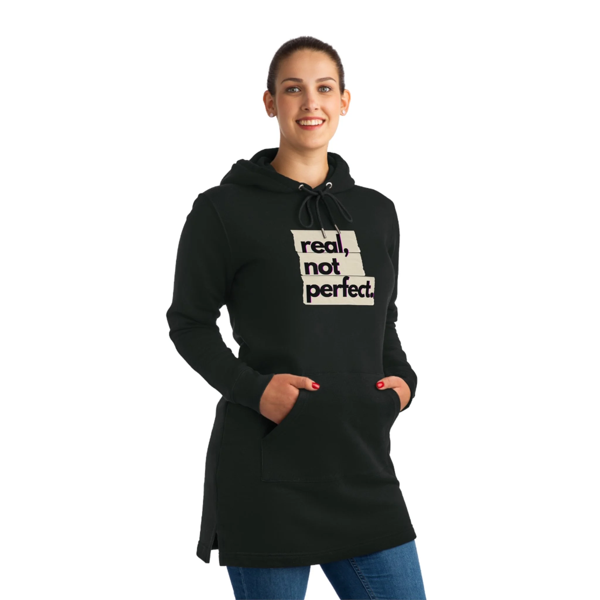This hoodie dress combines some of the most universally loved features of hoodies & dresses into a unique garment packed with personality. Made with 85% organic, ring-spun, combed cotton, and 15% recycled polyester, this hoodie dress brings an eco-friendly, feel-good uniqueness to any wardrobe. Features round drawcords in matching body color with metal tipping & eyelets.